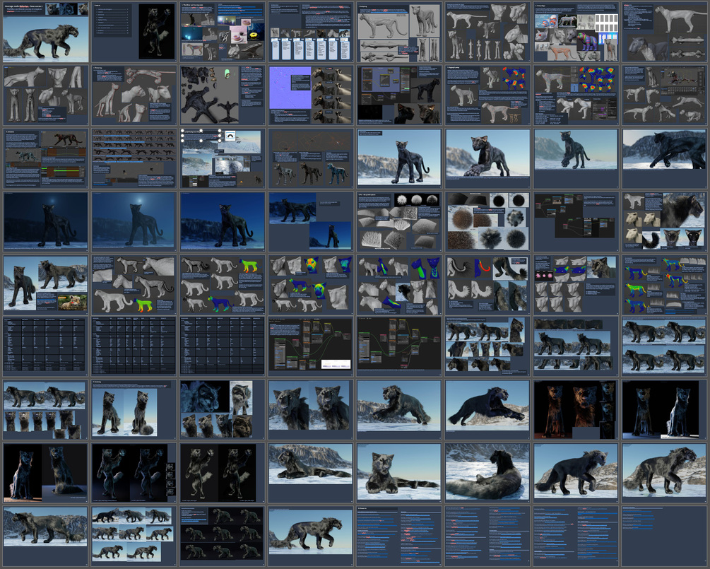 A 72 pages PDF showing my leaning journey as a self-taught beginning 3D artist in creating an animated and furred fantasy feline in Blender.